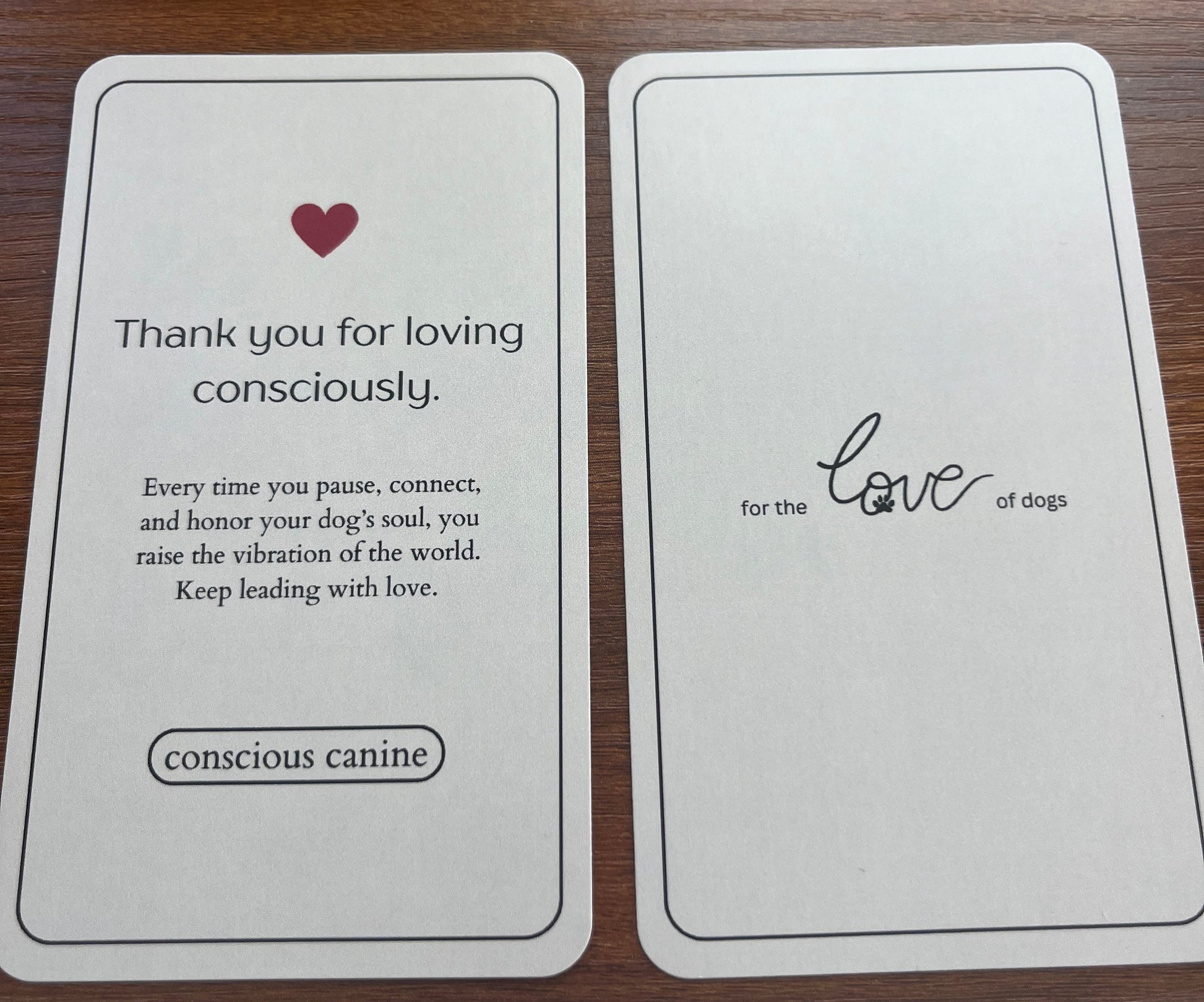 From reflections on unconditional love to prompts that spark playful energy, this deck serves as a reminder that our dogs are not only our best friends, but also our greatest teachers. Whether you pull a card in the morning to set an intention, use it during quiet moments with your pup, or share it as part of your family’s mindful rituals, the Conscious Canine Card Deck™ brings a sense of harmony, inspiration, and heart-centered connection to every day.